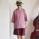 三色粉格薄棉面料 漁夫罩衣 Fisherman Smock七分袖短袖 - 女上衣/長袖上衣 - 棉.麻 粉紅色