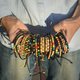 木質、棉質打蠟繩手鏈。紐扣用椰子殼固定。