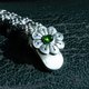 - The Green Flower Bracelet features a carved floral clasp set with a vivid chrome diopside stone. Vine-inspired details flow through the silver chain, creating an organic rhythm and a sense of natural growth. Symbolizing renewal, vitality, and calm energy, this piece brings a touch of nature’s quiet strength to your everyday style.