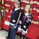 袖子為和風寬袖搭配反摺格紋布料與壓扣裝飾