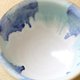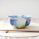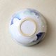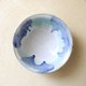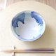 深さのある丸い鉢の形に成形し、艶やかな白い釉薬をかけ、数種類の青と緑の釉薬で模様を施しました。