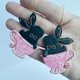 - 可愛的小黑兔輕輕從茶杯出來靠近你的臉旁,當你戴上它走路時,兔子會從左右輕吻你的臉頰啊! 適合喜歡可愛小飾物的你。