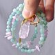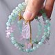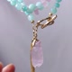 呼應天河石的溫柔色彩,以頂級貓眼**紫鋰輝**(**自信、人緣**)原礦為主墜、隨形石妝點鍊身,寶石色彩冰粉、晶質水潤、閃現**貓眼效應、流光溢彩**,美麗動人。