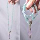 **1.圖上天河石珠約5.2mm,紫鋰輝原礦墜高約25mm、厚7mm,金流蘇長約45mm,繞3圈手圍約15cm,鍊身總長度約47cm。**
