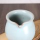 葉老師所生產的汝瓷含鐵量適當,還原程度控制適度,胎呈香灰色,釉面在不同光源下時而天青,時而粉青。而鐵口則呈現土與釉的一種交融感,釉面的開片細膩如魚鱗,均勻地與茶湯接觸後,紋理漸深,更顯潤澤。