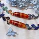 這兩條紅纏絲瑪瑙天珠勒子藤葉編織頸圈項鏈,是兼具藝術感與實用性的美麗首飾。由天然的紅纏絲瑪瑙製成,展現出大自然的無限魅力。不僅如此,項鏈的設計還別具一格,使用彩色及漸層藍色系的段染線,手工編織出藤葉造型,帶出清新自然的氛圍,無論搭配何種服裝都顯得獨特且個性。