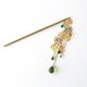 黄緑色、オリーブグリーンとも称される色の大粒チェコビーズを主役にしつつ