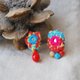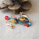 素材:さをり織り生地 ミラー 刺繍糸 ガラスビーズ ゴールドメッキイヤリング