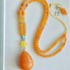 天然俄料蜜蠟水滴吊墜,妖花雞油黃老蜜蠟,天然流動紋,蜜滿蠟實,重約12.5克,尺寸約40x29x18公釐,總重22克,配手工編織鏈,支持復檢