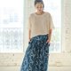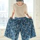 パンツの幅にたっぷりと生地を使用しているので、とてもゆったりした履き心地になります。暖かい時期は一枚で、寒い時期は中にレギンスなどを履いて頂くと長い季節履いていただけます。