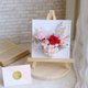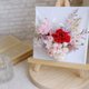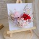 ・畫布尺寸約15x15公分,框架約23公分。含2朵永生康乃馨(可更換為玫瑰)、其他皆為其他永生、或乾燥花材。
