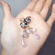 嚴選閃現迷人夢幻絲綢光(貓眼效應)之紫鋰輝水滴、星星(吉星高照),相佐手工紫花琉璃珠飾,編製華美古典流蘇,粉、紫相應,富麗得無以復加。