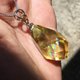 這款的主石位置是黃水晶,仔細看的話會看到一絲絲狀的彩虹色,是星光黃水晶,但是由於沒有做弧面的切割,所以不會看到明顯的十字星。