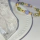 - 內容物 般若波羅密多心經雷雕珠:8.5mm 藍玉髓:8mm 黃水晶:7mm 葡萄石:7mm 白水晶:7mm 配件:14k注白金花蓋、扁珠、圓珠 手圍:16(修改手圍請告知)