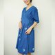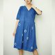 V neck with elbow sleeves, wrap knotted inside and outside for more secure. Loose type dress, lovely design, cool indigo dyed pattern.
