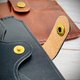 本款卡包的顏色選擇有素面黑色與素面茶色,兩種色調皆展現出簡約而不失高雅的風格,適合各種場合與服裝搭配。邊緣的壓線處理則為整體設計增添了一絲精緻的細節,彰顯了工藝的精湛。同時,手染的工藝使每一個卡包都獨一無二,帶來獨特的個性與魅力。