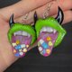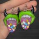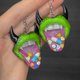 Earrings. Green lips with horns and pills. Made of high-quality polymer clay and covered with gloss varnish