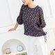 碎花寬袖抓皺七分袖上衣/藍色 透氣舒適,夏秋皆宜