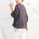 碎花寬袖抓皺七分袖上衣 藍色 - 女上衣/長袖上衣 - 其他材質 藍色