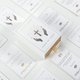 牌卡使用4000GSM超厚磅數牌卡,外盒1200GSM紙板包覆白色幻彩紙,牌卡使用來自德國的HEIDELBERG海德堡印刷機印製,55張全部正反面文字,包含側邊皆使用手工雷射燙金