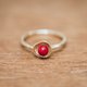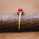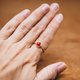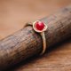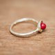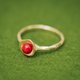 水面にのぼってきた気泡のイメージからインスパイアされた、有機的で優しい形の泡シリーズ。こちらのリングは、素材にK18イエローゴールドを使用し、泡の中に赤サンゴを入れたバージョンになります。