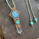 - 獨一無二的南美蠟線編織 月亮石 白水晶柱 頸鏈。