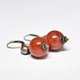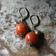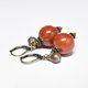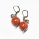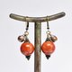 珊瑚色のまん丸なアフリカンアンバーと民族鈴を繋いだピアスです。