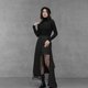 以西裝布與蕾絲異材質拼接,營造豐富層次感。壓釦設計可隨意調整外層造型,增添穿搭趣味與靈活性。內層微透視蕾絲自然修飾腿部線條,拉長視覺比例。可搭配短版上衣,或作為襯裙搭配中長版上衣,呈現多變造型,是兼具時尚感與創意穿搭可能的秋冬單品。