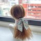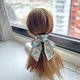 使用美國品牌棉布搭配製作成長尾蝴蝶結、加上緞帶和釘珠做成的髮圈,氣質浪漫,無論上班或休閒聚會都適合配戴。