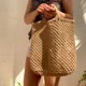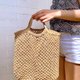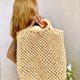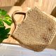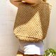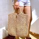 Spacious woven bag with short handles. Made from natural jute using macrame technique.