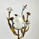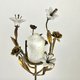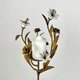 這對可愛的燭台,c。 1970 年,來自義大利,以乳瓷百合、鍍金青銅葉子和玫瑰花蕾為特色。