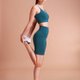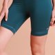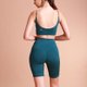 高腰超服貼褲頭不擠腰邊肉,長度為時下最流行的機車褲cycling shorts六分長度,不會太長也不會太短適合大多數練習者,褲管綴有一圈彈性透膚網紗為亮點,剪裁立體提臀,適合騎車跑步瑜珈練習。
