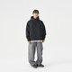 本系列25F/W機能防風連帽外套,整體設計以「城市通勤與戶外之間」的休閒實用機能爲核心,實現全天候造型自由。採用聚酯纖維面料製成,具有耐磨性,抗皺性以及防潑濺功能。可調節的下擺、帽子以及袖口,可根據天氣變化和活動強度,自由調整衣服的鬆緊度。整體不規則弧形分割設計,視覺提升細節感。插肩版型配合下擺弧形剪裁,保證穿著舒適的體驗感以及日常活動的自由度,同時提升穿搭場景的適配度。