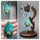 - Necklace with two baby rabbit or hare. Oil painting on green Agate pendant. Oil paint, protected by several layers of varnish. Lacquer miniature technique. You will really stand out with a this Statement necklace.