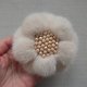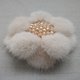 Ivory flower with a center of sparkling glass beads. Soft and fluffy brooch with lots of high quality mink fur is ideal for decorating a coat or bag, for a winter gift.