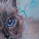 In this captivating contemporary piece, a Birman cat takes center stage against a mesmerizing backdrop of azure blue hues. The feline's expression exudes significance, with piercing blue eyes that seem to hold secrets untold. The cat's poised presence against the vibrant background evokes both a sense of tranquility and a hint of enigmatic allure, inviting viewers to immerse themselves in the cat's world of serene mystery. Employing a fusion of oil paints, acrylics, and texture paste, the artist masterfully constructs a palpable realism within the confines of a modern artistic approach.