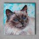 - Birma cat painting Original contemporary art by artist Ginna Paola. Voluminous texture, Size: 29x29x3.5 cm. The cat's poised presence against the vibrant background evokes both a sense of tranquility and a hint of enigmatic allure, inviting viewers to immerse themselves in the cat's world of serene mystery. The accurately chosen palette and unusual texture