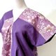 紫色在日本古代被視為尊貴之色,象徵優雅與高貴。布料上的傳統日式花卉呈現四季流轉之美,搭配大面積素色拼接,傳達對生活細膩的體會。