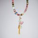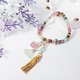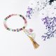 嚴選頂級阿富汗彩虹糖果碧璽,顆顆色採濃郁、火彩閃耀,巧思編製海藍寶扇(和善、智慧)、碧璽如意、金流蘇綴飾,優雅環繞手腕,展現女姓氣質柔美、華麗浪漫之情。