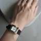 方形錶盤搭配簡潔的時標,呈現出極致簡約的設計美學。白色錶盤上飾有細膩的魚骨紋,低調中不失高雅氣質。