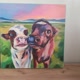 Oil original painting of cute cows is personally painted by me, painted on both sides. It is a pleasure to draw such sympathetic cows. The picture with a couple of cows is very positive and kind. Such painting will decorate the interior, will delight you for many years. I package the painting securely so that it arrives in perfect condition. Track number provided.