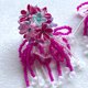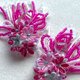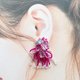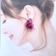 つまみ細工で作ったお花の花びら一枚一枚に色を付け、天然石クリスタルとビーズを合わせた華やかなイヤーアクセサリー。