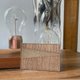 以人手加工木皮,再配合水洗牛皮紙而製造整個卡套,堅持是不用皮革,而且耐用防水、柔軟防霉,還有因為木皮加工過後,特點是可以任意扭,繼而以人手一針一線所製成,務求以一線過的做法,能使產品更為耐用。