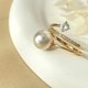 日本akoya珍珠稀有美好,不論是在迎光還是逆光狀態下都呈現出颯颯亮的珠光,被稱為小燈泡。紗織小姐甄選出一枚直徑8-8.5mm的渾圓炫彩akoya,將珍珠與晶體鋯石鑲嵌在各自戒圈上兩兩相望,星輝互奕,讓她在你的指尖悠悠的閃著天然的光芒。戒指設計為開口,可以適配你的不同需求。
