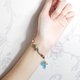 嚴選頂級阿富汗彩虹糖果碧璽,相佐頂級海藍寶雕花生(好事發生)、蓮蓬(清淨、智慧)、人魚尾巴(勇敢、自由),與琺瑯船(一帆風順)、六字真言(吉祥平安)、魚(如魚得水、年年有餘),寶石顆顆色採濃郁、火彩閃耀、閃現彩虹星光效應、並有罕見魔鬼藍色調,優雅環繞手腕,展現女性氣質柔美、華麗浪漫之情。
