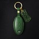 鑰匙皮套採用的是皮革塑形工藝,利用皮革強韌的回彈力,經古法技藝製成加以固定成形