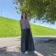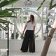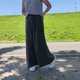 棉質黑色染色石洗寬褲,有 2 個口袋。彈性腰部採用柔軟的龜鱗圖案棉質布料,非常舒適。剪裁精美的闊腿褲,可愛的設計,酷炫的黑色染色石洗。