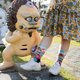 而小創襪設計師藉由風獅爺為靈感,創作了兩雙金門風獅爺襪款。