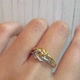 個性的雙圈戒指上,以手指交扣作為設計理念出發。
