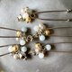 さらに優しい色合いのマザーオブパールとゆらゆら軽やかなビーズたちを添えて、ストールピン(ショールピン)に仕立てました。